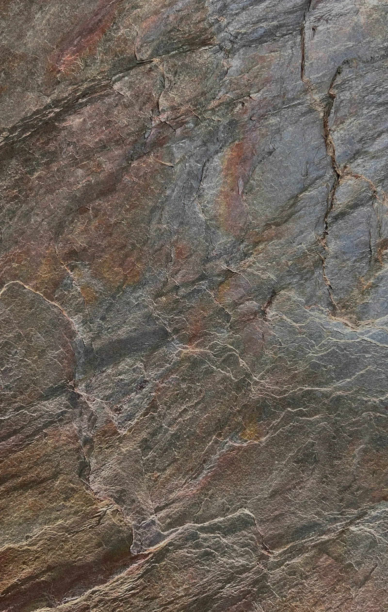 A very pale to white slate that is a match for any bright marble. An unevenly split structure and surprisingly fine red and black veining lend an air of elegance to every interior.